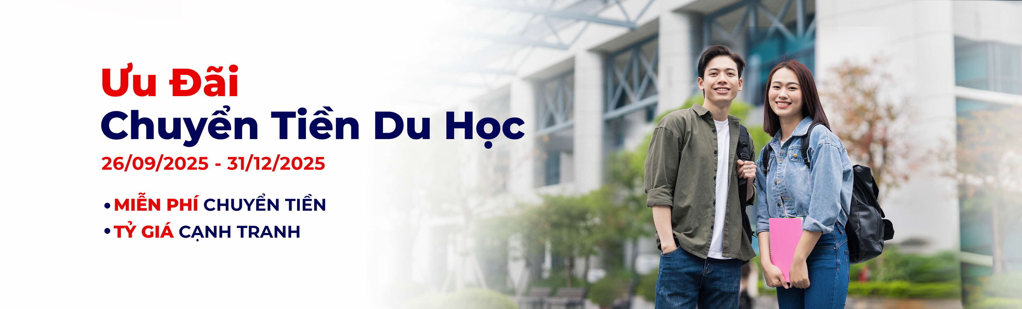 - Miễn phí chuyển tiền ra nước ngoài - Tỷ giá ngoại tệ cạnh tranh - Đa dạng ngoại tệ: USD, EUR, GBP, SGD, AUD, JPY, MYR